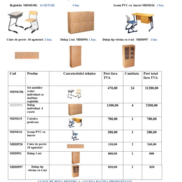 Set mobilier scolar individual cu inaltime reglabila 65x45 cm 1.047,20 lei TVA inclus