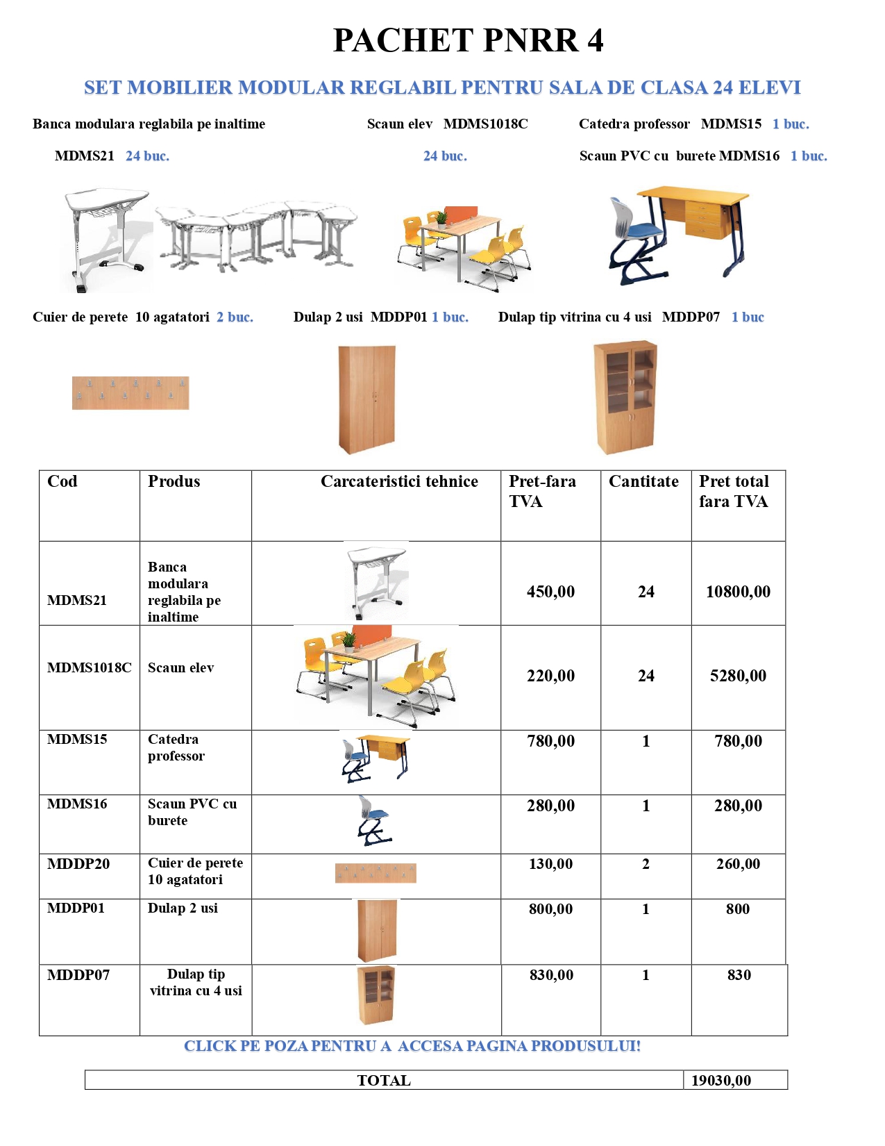 • Mobilier scolar pentru sali de clasa